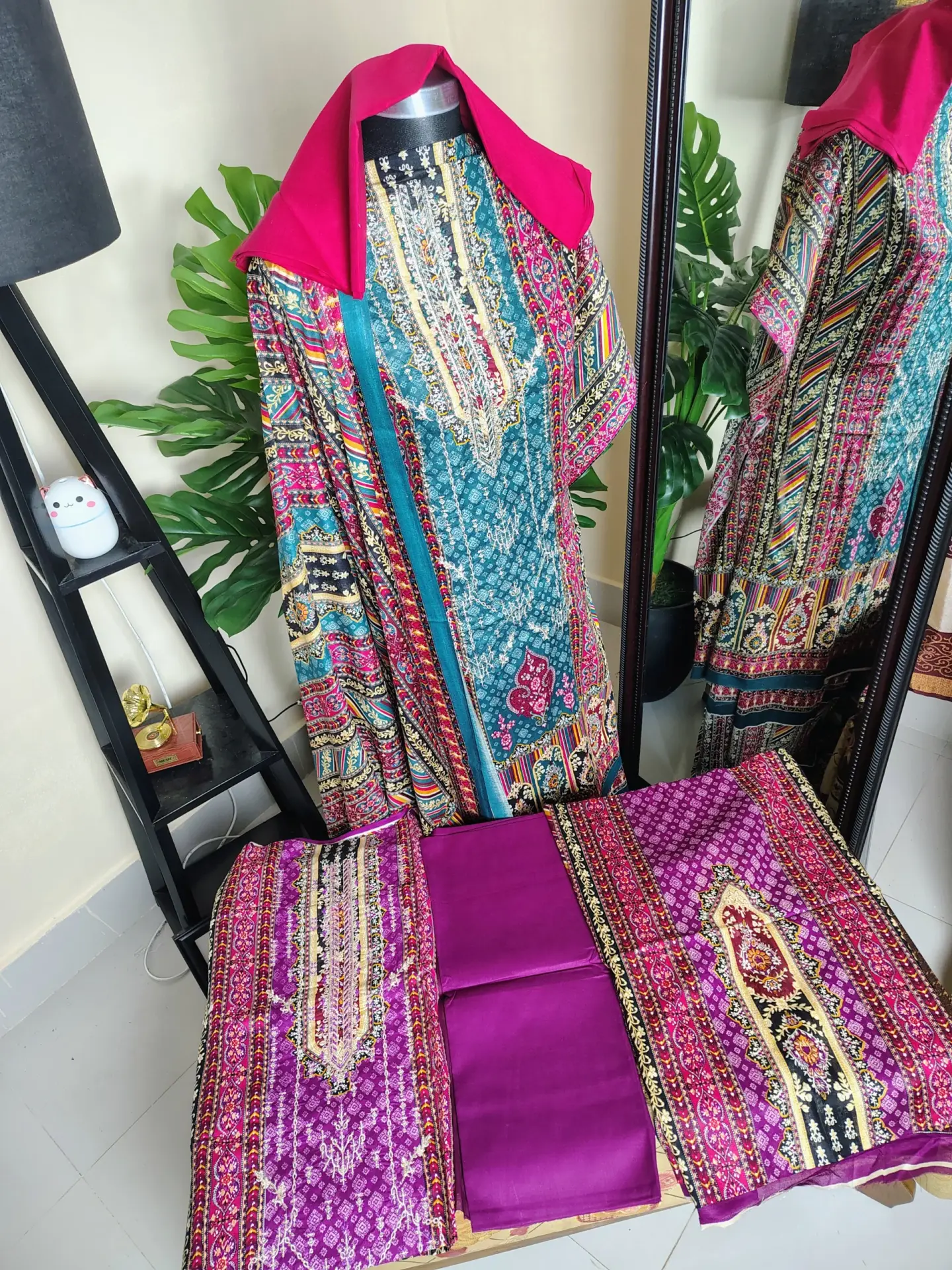 - ডিজাইন: আকর্ষণীয় মাল্টিকালার ডিজিটাল প্রিন্ট। এতে ফিরোজা, গোলাপী, হলুদ এবং কালোর মতো একাধিক রঙের নিখুঁত ও উজ্জ্বল সমন্বয় করা হয়েছে।