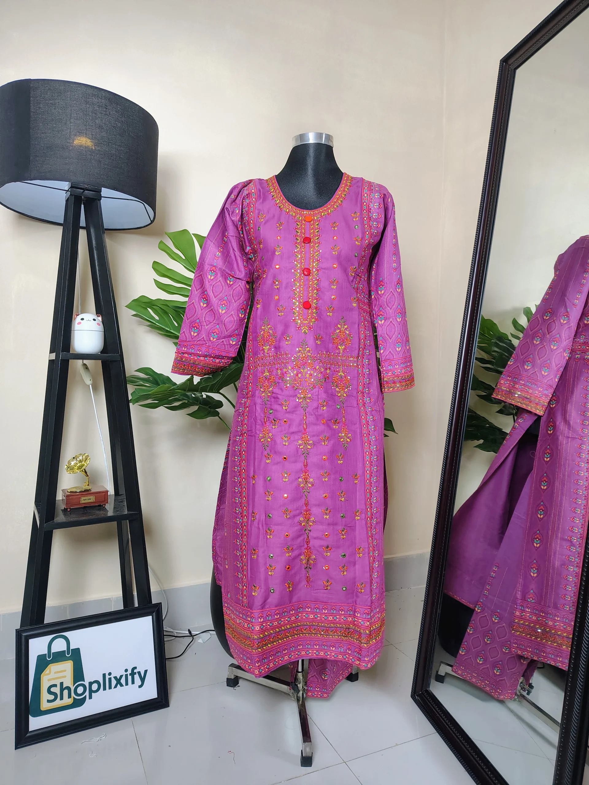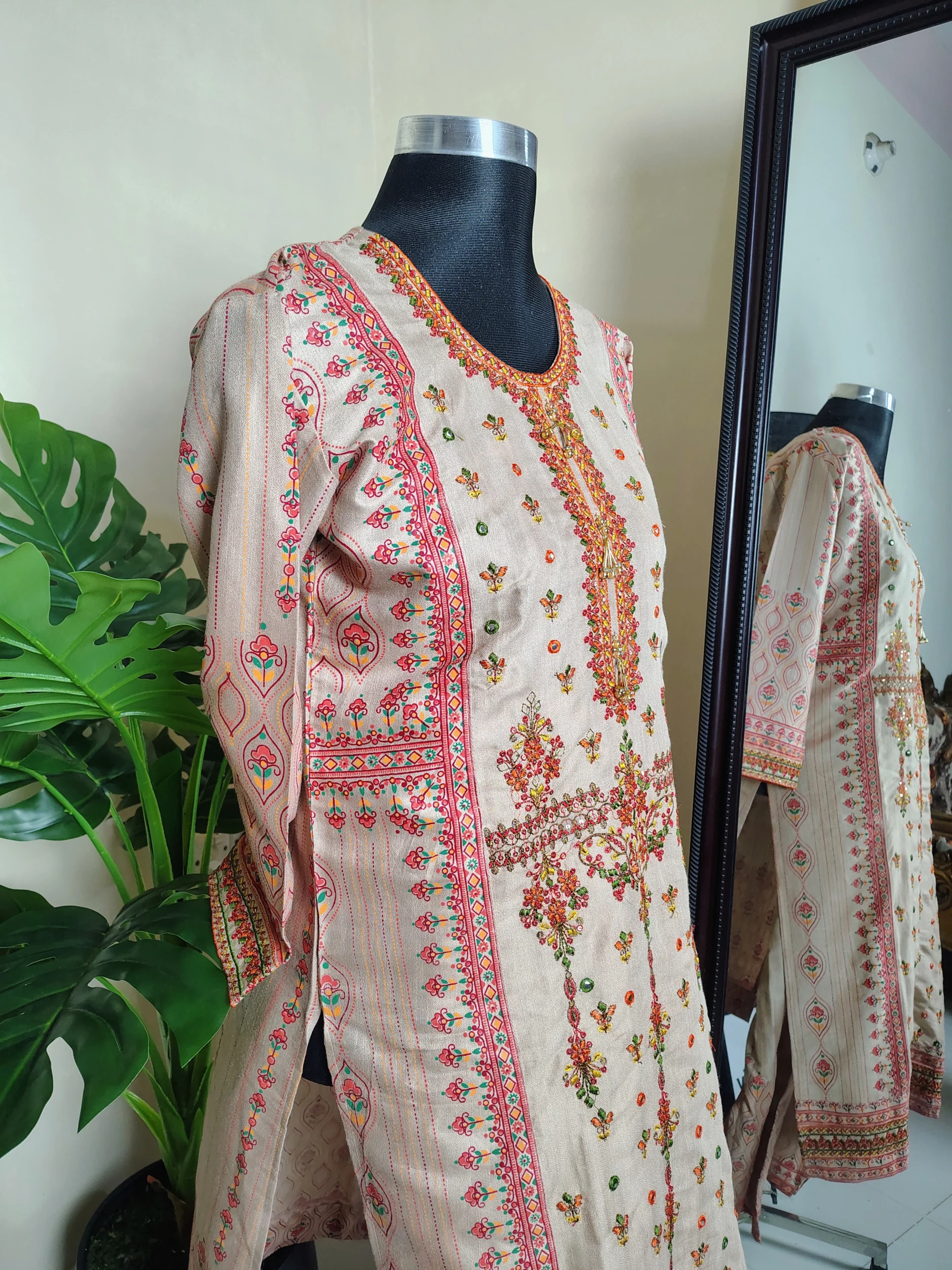 ✨ প্রোডাক্ট নাম: কটন এমব্রয়ডারি টু-পিস (লং কামিজ + দুপাট্টা)