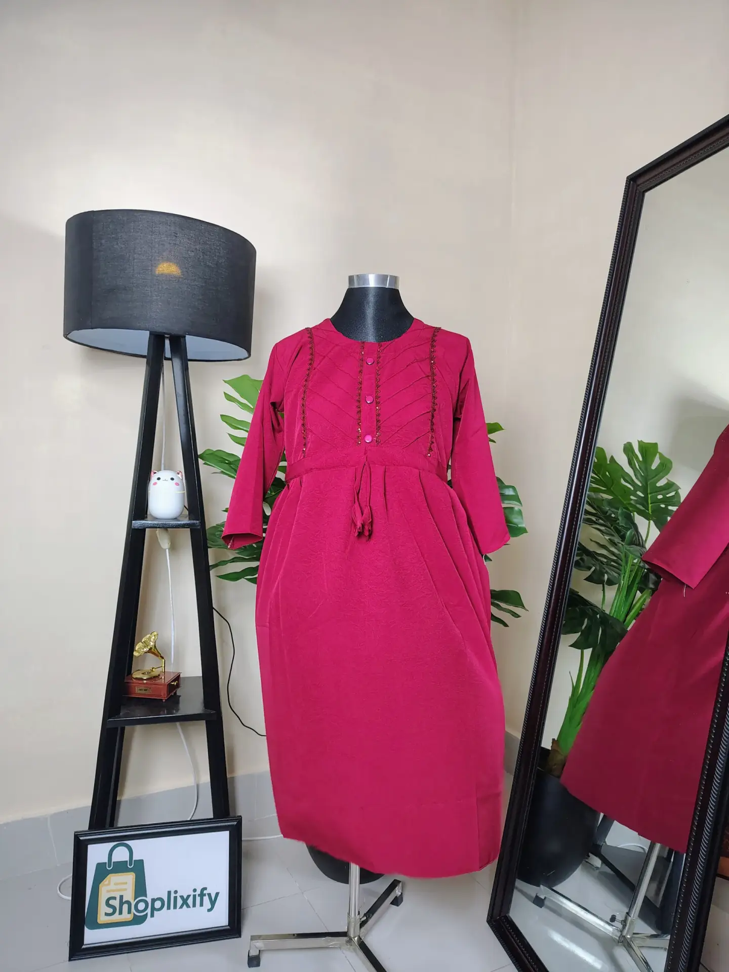 স্টাইলিশ লং ড্রেস, সফট ফেব্রিক, ফ্রন্ট ডিজাইন ও টাই বেল্ট সহ। কালার অপশন: Soft Pink Rose, Cool Grey Blue, Deep Magenta, Lavender Purple, Sage Green ও Blush Pink। ক্যাজুয়াল, অফিস ও ফেস্টিভ সব অনুষ্ঠানের জন্য পারফেক্ট।